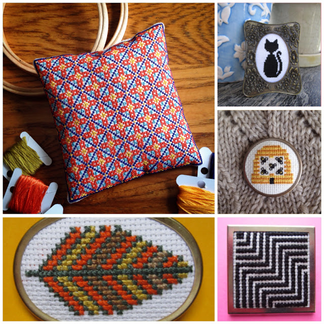 Christmas gift-making season is upon us, so I'm re-sharing a few of my favorite cross-stitch projects that have appeared previously on my blog. Most of them are pretty quick to stitch. The mini pillow (top left) is a bit time-consuming, but very much worth the effort. Click the name of each design listed below to visit its original blog post. To download free printable charts of these designs--and lots of others--got to the "Free Cross-Stitch Charts" page on my blog.