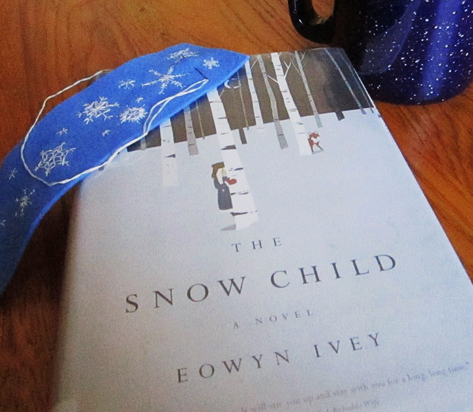 I loved the story and the author's descriptions of the wilderness setting, but the element that sticks in my memory the most is the coat Mabel sews for the girl. It's described as being made from blue wool with white fur trim and snowflakes embroidered with white silk.