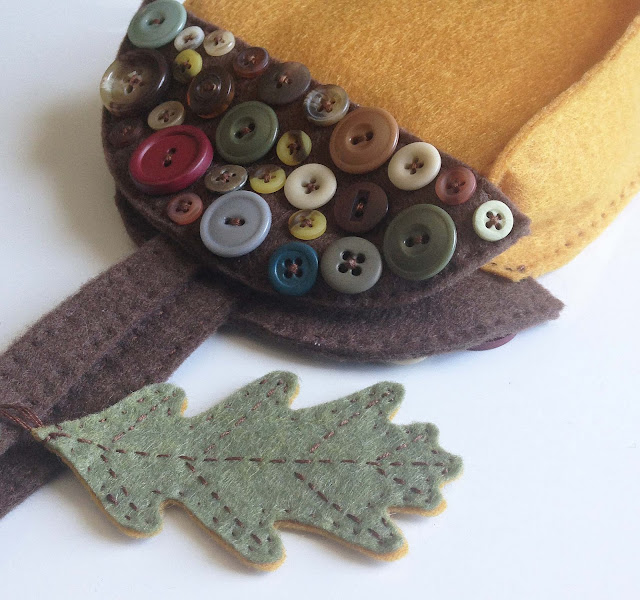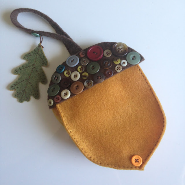 If you read my blog regularly, you've probably figured out that I have a bit of an acorn obsession. I have acorn jewelry, acorn pot-holders, and acorn ornaments, and I keep a bowl of real acorns in my living room. And yes, I make lots of acorn craft projects. The acorn treat bag I'm sharing here is made from felt and buttons. It originally appeared on Crafts 'n Things (now Craft Ideas) magazine's website.