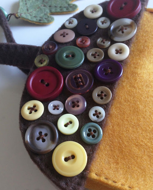 you sew. Be sure to keep the buttons about 1/8" from the felt edges so you